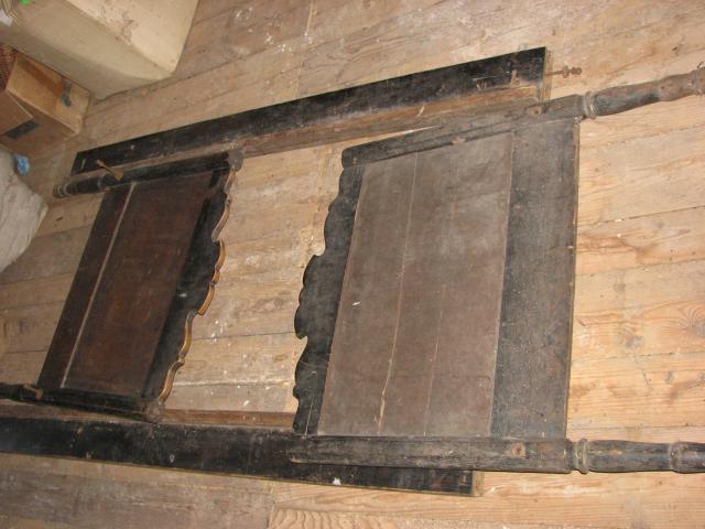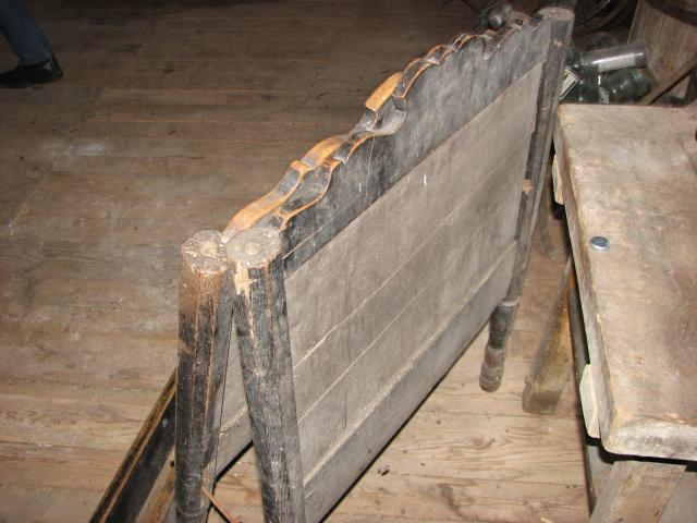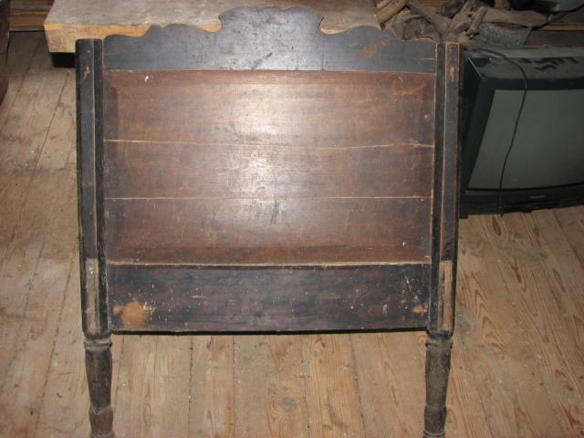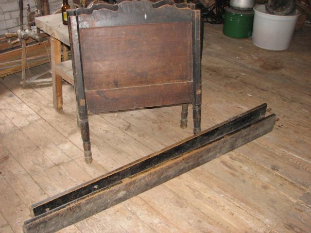 Senovinė viengulė medinė lova. Yra lovugaliai ir išilginės lentos. Nėra grotelių. Ant lovugalių trūkta medinių papuošimų. Šis daiktas yra ne Vilniuje, tai gi, jei domina reiktų derinti parsivežimą atskirai.