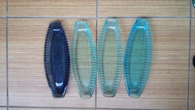 trys žalsvos, viena mėlyna . ant mėlynos yra kažkoks užrašas, ant kitų nieko nėra