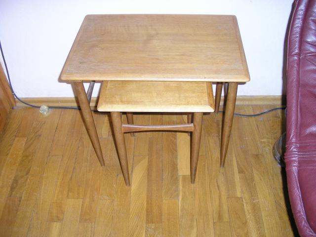 Senoviniai antikvariniai staliukai. Ismatavimai didesnio: plotis 39cm, ilgis 56cm, aukstis 49cm. Mazesnio : plotis 34cm, ilgis 34cm, aukstis 43,5cm.