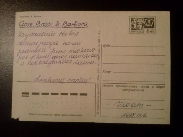 1976m. atvirukas su kovo 8-aja, prirašytas. 1977m. atvirukas su kovo 8-aja, prirašytas. Po 1eur.