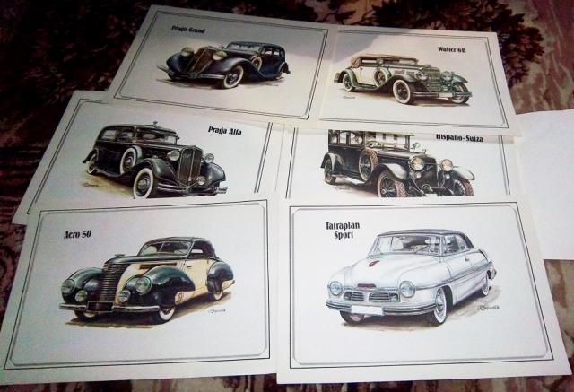 24 senoviniu auto plakatai, čekų automobiliai. kitoje puseje aprasymas. plakato ilgis 42cm aukstis 30cm.