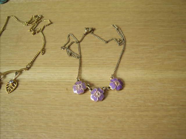 auksines spalvos gero metalo kaip nauji, liko tik su violetinėmis gėlytėmis