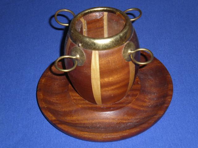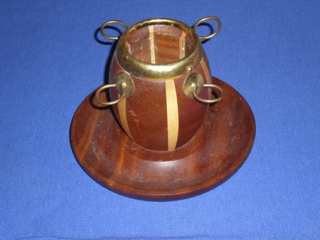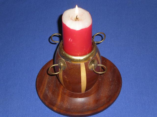 Senovinis medinis su zalvario detalem saukstuku ir zvakes laikiklis (cukrine, kavos dezute)
