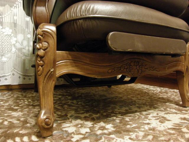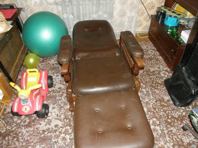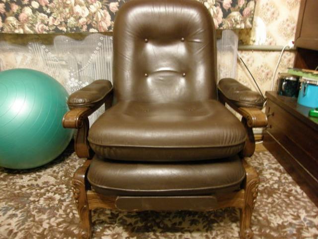 Senovinis kreslas, azuolinis, naturalios odos, ranku darbo. turi daug padeciu(islitiesia koju atrama, atlosas taip pat lankstosi pagal poreiki)