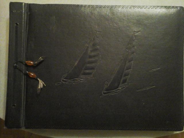 Senas, naudotas, odiniu viršeliu , puoštas su gintariukais foto albumas. albumas 29.5*41.5 cm, 28 lapai, nėra trijų baltų perdengimo lapų.Likę priklijuoti kampukai. Maždaug 1953m. Pardavimui 9 Eur.