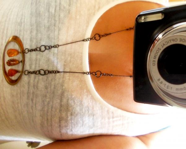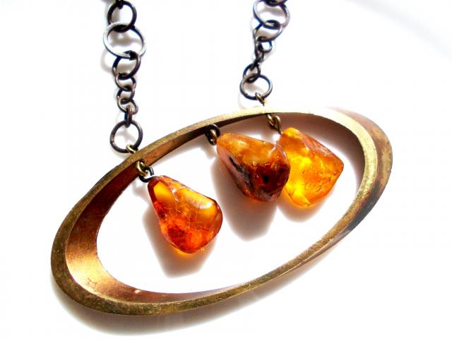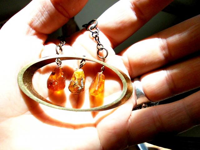 senovinis zalvarinis pakabukas su tikrais gintarais ir grandinele