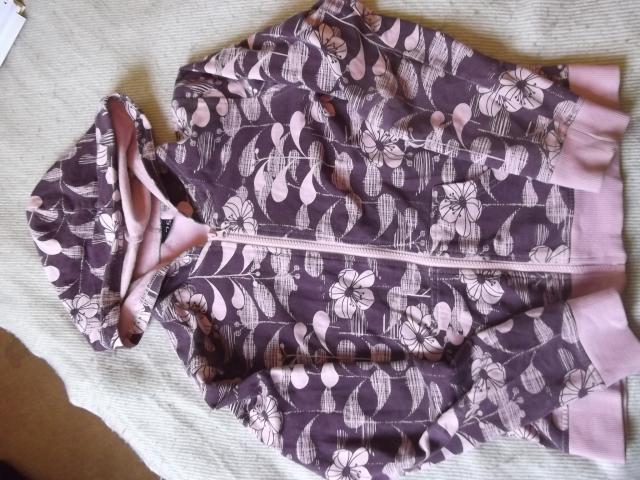 Rožinis,gelėtas džemperis su kapišonu.