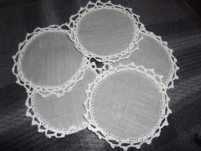 peltakiuotos servetėlės yra apvalios ir kvadratinės, dar yra ir kitų spalvų.Lininės rankų darbo.