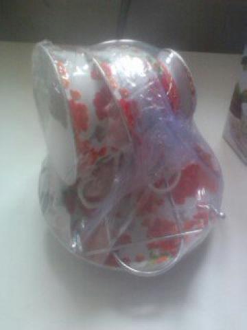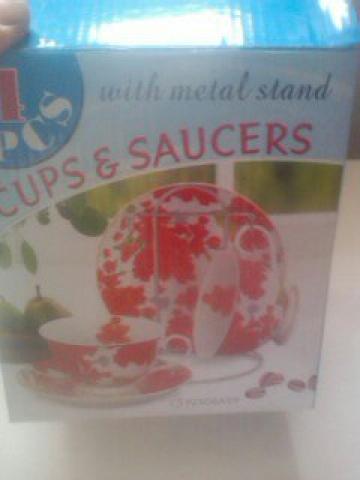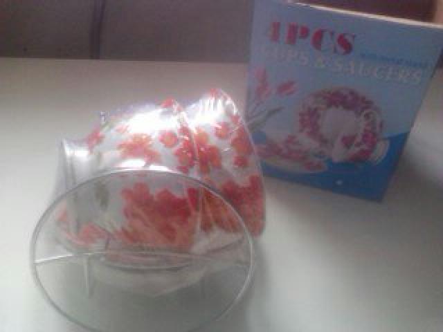 Keturiu daliu serviziukas: du puodeliai ir dvi lekstutes. Yra stovas. Visiskai nauji, is serijos ,,nepanaudotos dovanos" :) siuntimas kainuotu papildomai. SIE SERVIZIUKAI YRA DU VIENODI