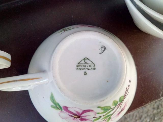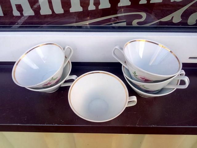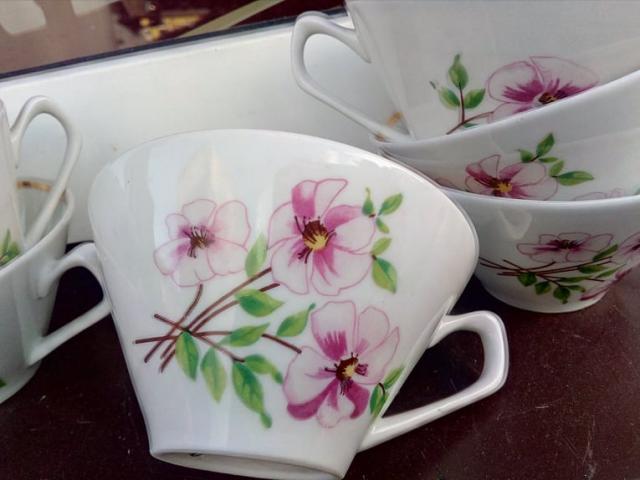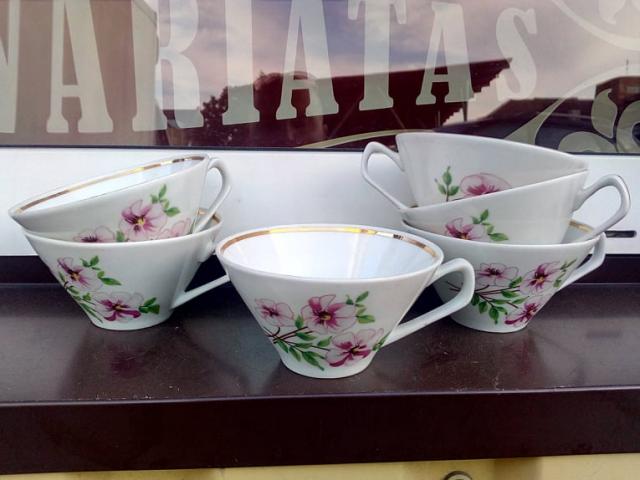 Šeši lenkiški porcelianiniai puodeliai su gėlytėm.
