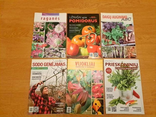 nr: 41 Raganės, 50 Vijokliai, 51 Daigų auginimo ABC (viršelio defektas 2-je foto) 67 Užrašai apie pomidorus, 75 Prieskoninių ir vaistinių augalų sodas, 79 Sodo genėjimas. Už visus 3,50€