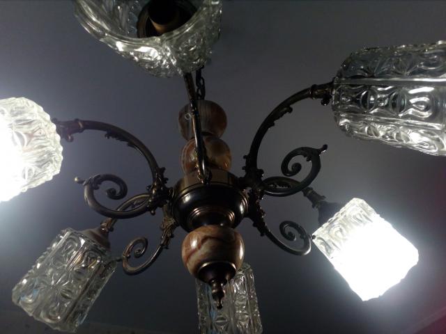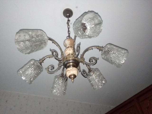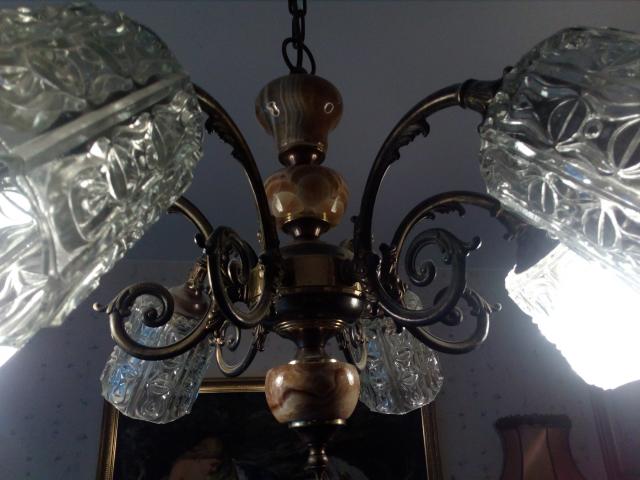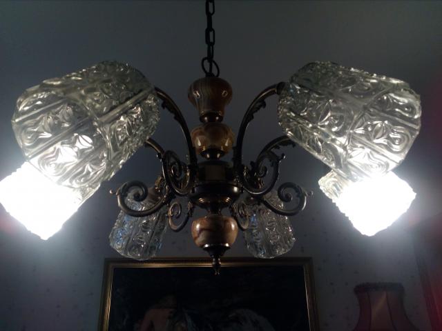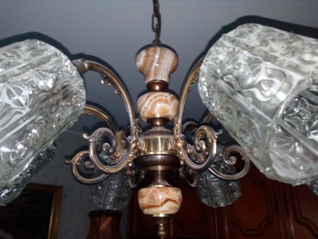 Šešių lempų šviestuvas su akmeniu Oniksu.