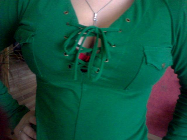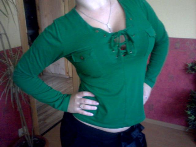 Afigiena žalia maikutė, krutinė labai gražiai susivarsto. Atrodysit išskirtinė ;)