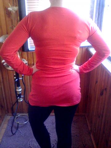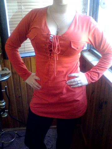Afigiena raudona maikutė, krutinė labai gražiai susivarsto. Atrodysit išskirtinė ;) Galima nešioti kaip suknytę.