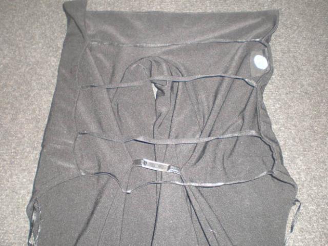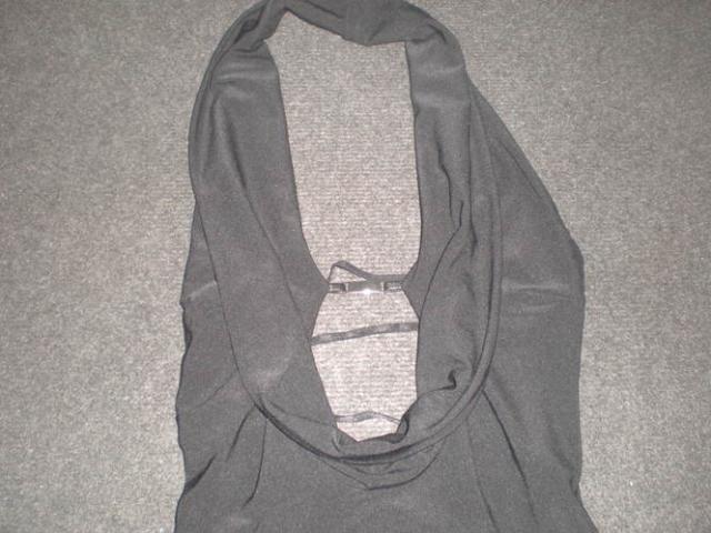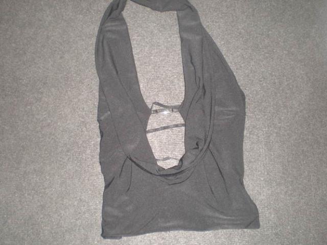 priekyje per kakla suimta metaliuku per krutine,o nugara nuoga prilaikoma horizontaliais dirzeliais ,nu tokia sexy sakau,prie dzinsu gerai atrode,XS,S tiktu kudesniam M:)