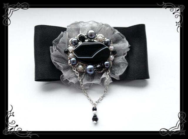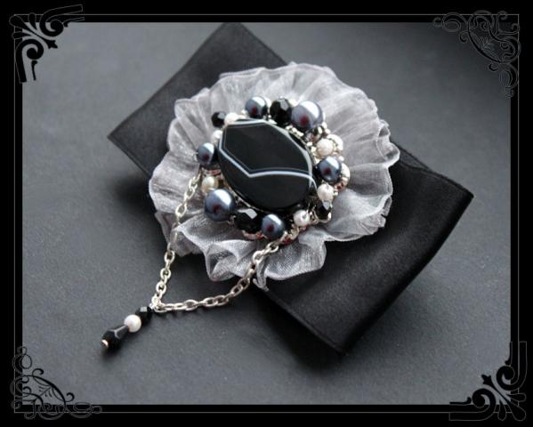 Įvairių faktūrų audiniai, agatas, stiklas, stiklo perlai, metalas. Dydis 9cmX5cm