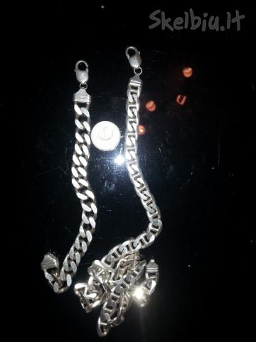 Masyvios grandinėlės. Ant kaklo ~110g, gražus raštas, ant rankos ~60g. Abi pilnavidurės. Parduodu tik abi iškart.