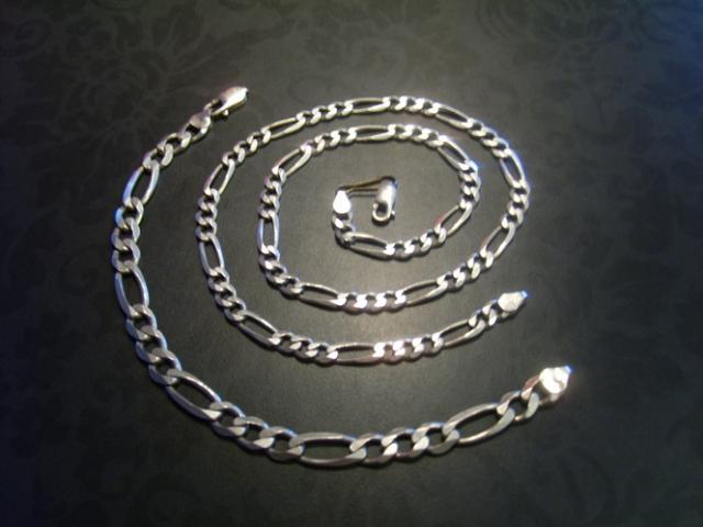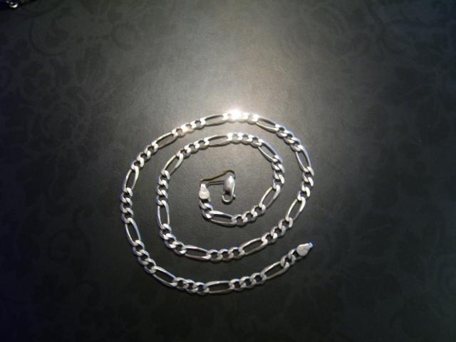 Vyriška grandinėlė ant kaklo. Defektas - užsegimas yra,bet jis nutrūkęs. Prikabintas ne sidabrine detale(matosi foto). P.S. yra ir tokio pat 'rašto' grandinėlė ant rankos...
