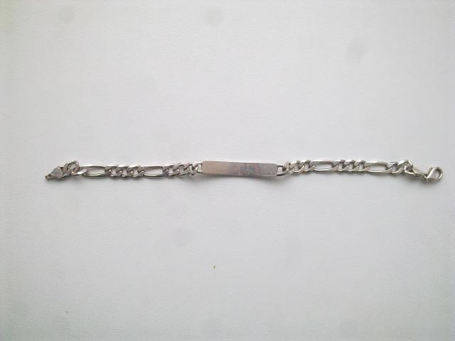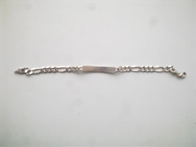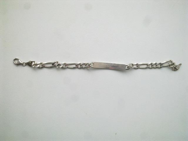 Sidabro apyrankė, yra praba. Ant plokštelės yra vaikino ir merginos vardas išgraviruoti ir data, bet graviravimą galima nuvalyti pas juvelyrą.