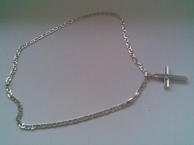 Sidabrine grandinele ant kaklo su sidabriniu kryziuku