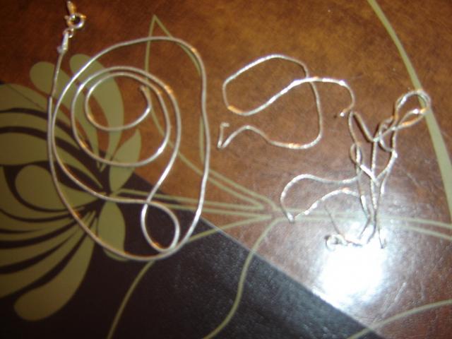 Dvi sidabrines grandineles, abi sutrukusios, viena storesne kita plonesne