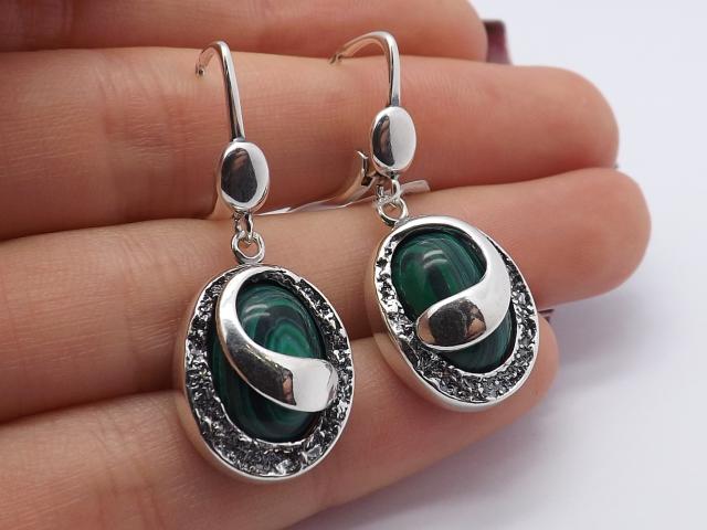 Praba 925 Akmuo Malachitas Dydis 3,8 x 1,4 cm