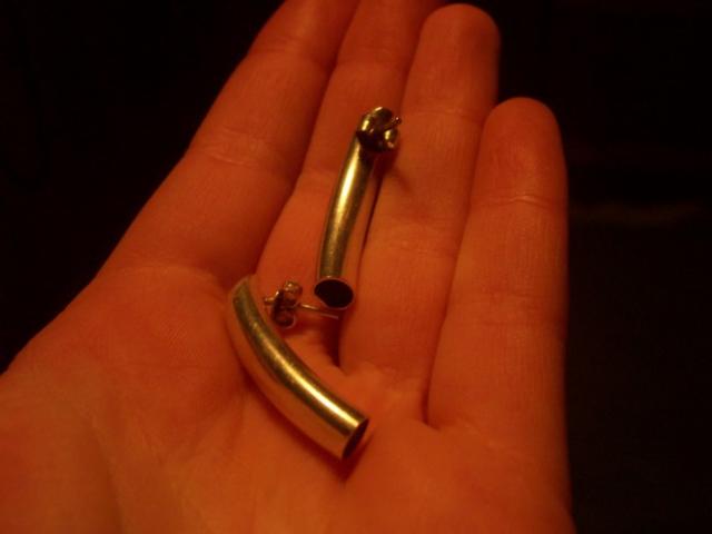 Nėra dideli, labai lengvi, visiškai nauji, sidabriniai. Tuščiaviduriai tarsi vamzdeliai.