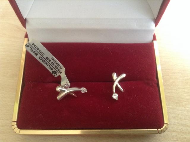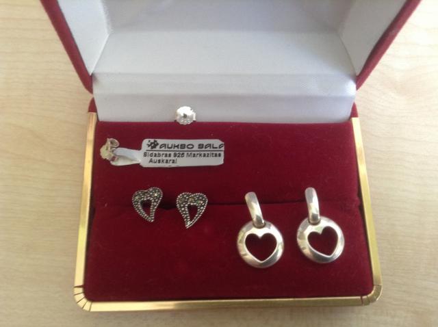 Sidabras 925. Pirmieji su etikete, antrieji be uzsegimu, tretieji su cirkoniu, penktieji be vieno uzsegimo.