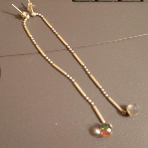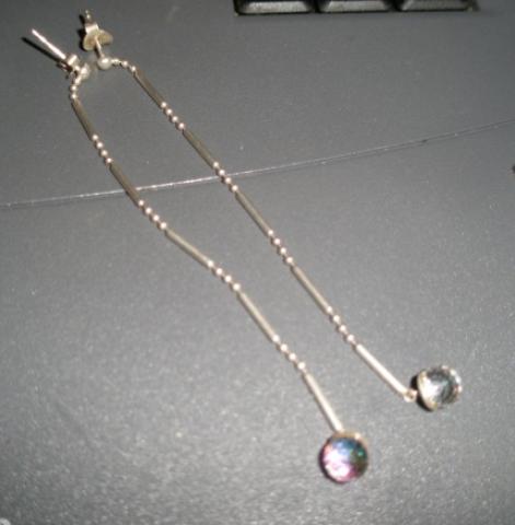 Parduodu sidabrinius auskariukus 9 cm ilgio. Auskarų apačioje šviesoje spalvotai žėrintis kristalinis burbuliukas.