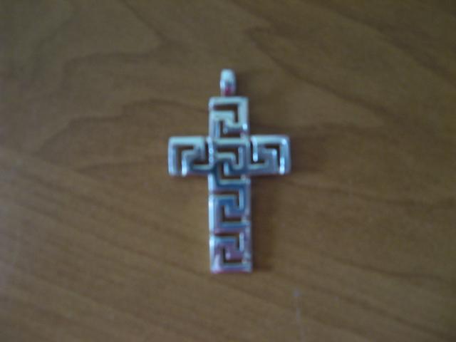 sidabrinis kryziukas- pakabukas, idomaus rasto, gana didelis, apie 4,5 cm, grazus.