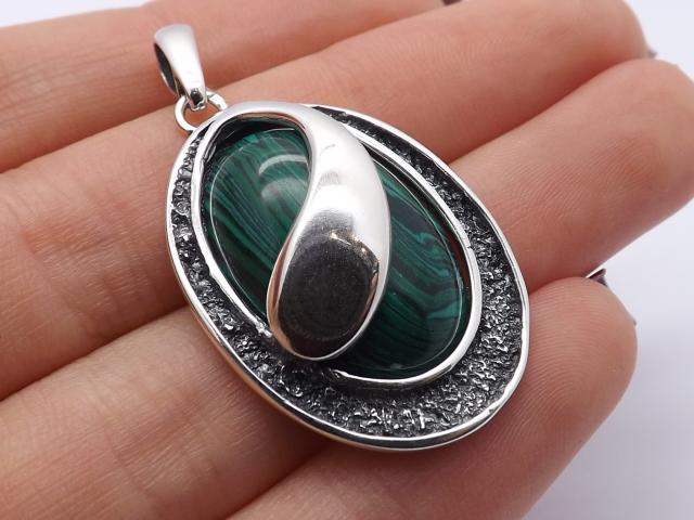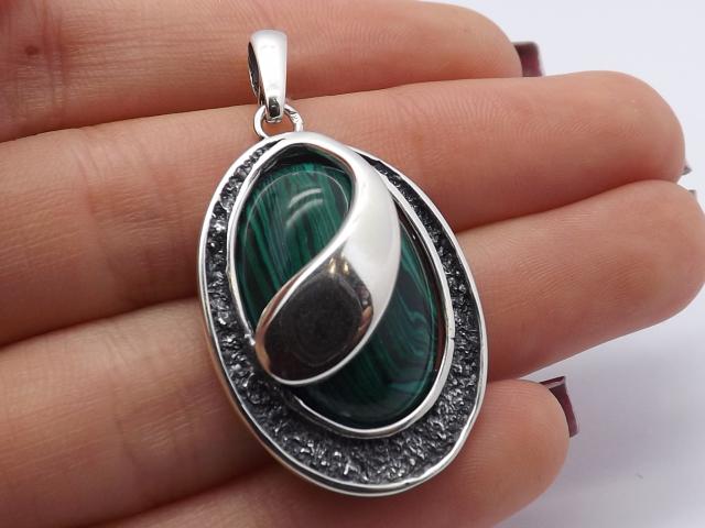 Praba 925 Akmuo Malachitas Dydis 4 x 2,1 cm