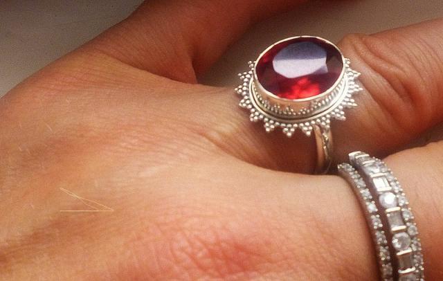 sidabrinis ziedas su granato akmieniu