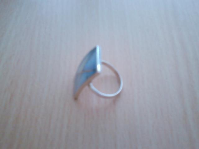 Sidabrinis žiedas su žydru kriauklių paviršiumi, 18 mm