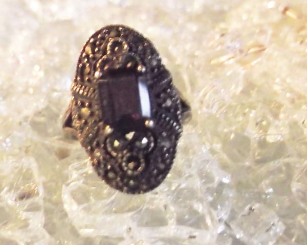 Indiško sidabro žiedas su natūralui ametisto akmeniu ir natūraliais markizito akmenukais.18 dydis ,praba 925.Žiedo akmuo violetinės spalvos.