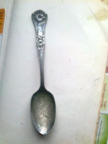 Sidabrinis 1908 metu Grenoblyje pagamintas šaukštelis, firma Rogers, 10 euru, gintarines sąsagos 10 euru