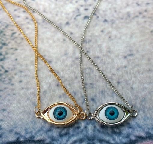 ♥Išskirtinio grožio sidabro/aukso kaklo papuošalas - akis. ♥Grandinėlės ilgis: 27 cm ♥Akis: 1,5 x 3 cm