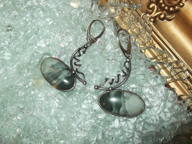 Vienetiniai 925 prabos sidabro auskarai ,su natūraliais žaliojo jaspio akmenimis.