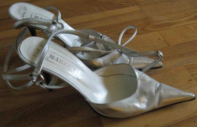 Nauji itališki odiniai bateliai. Aptrintos sidabro spalvos. 37 dydis. Kulno aukštis apie 9 cm. (nuo pado)