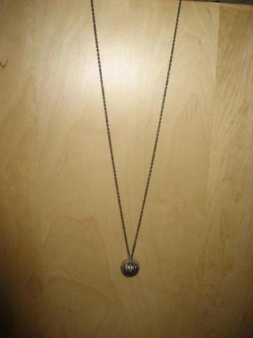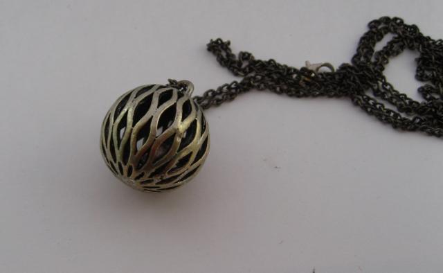 Sidabro spalvos pakkabukas burbuliukas ant ilgos grandinėlės.