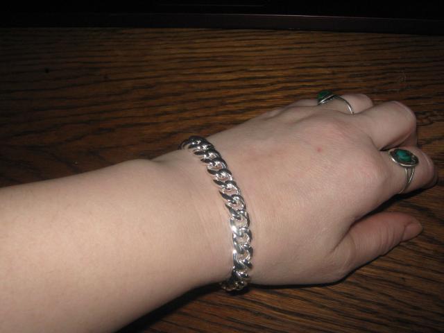 nauja sidabruota apyranke(20 cm ilgio/ 9 mm plocio)925 praba.Graziai atrodo ant rieso.