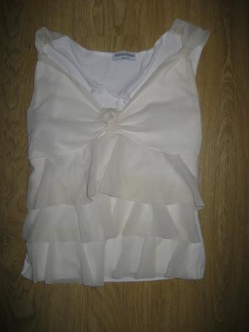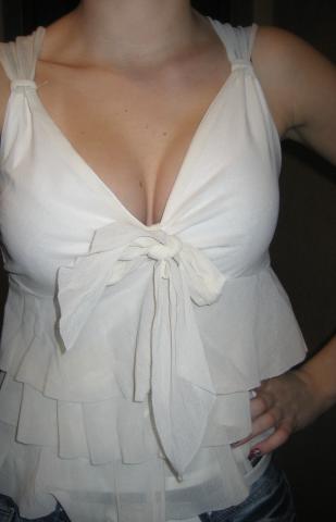 Priekyje, kaip matosi nuotraukoje yra susluoksniuota medžiagytė, per vidury kaspinas, labai patogi medžiaga. Kaina sutartinė. :)