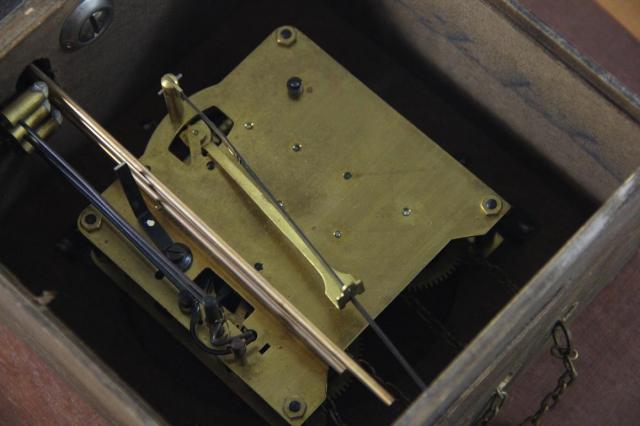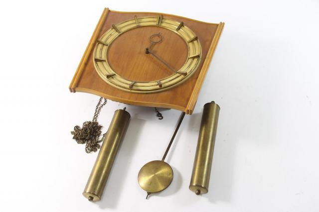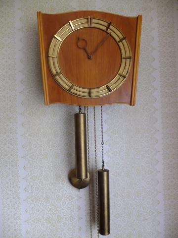 Sieninis laikrodis su svarsčiais vokiškas einantis,trijų stygų gongas skambina pusvalandžius ir valandas.Kainos sutartinės.