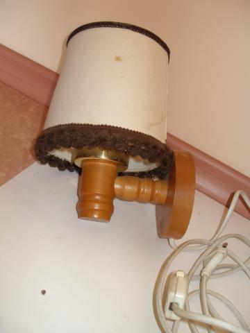 Dar Vokietijos demokratinės respublikos gamybos sieninis šviestuvas su medžio laikikliu.