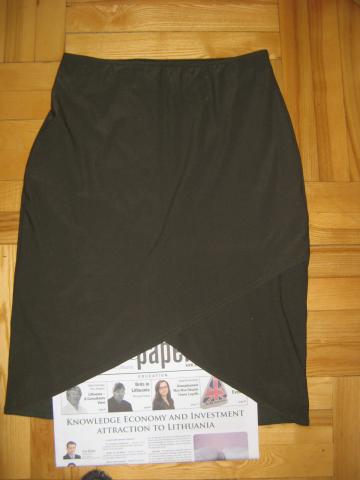 nedaug dėvėtas, tad net dėvėjimo ženklai nespėjo atsirast :) sijonas su įdomiu iškirpimu, kažkaip taip gaunas, kad jį užsidėjus, apačia 'priglunda' prie kojų, o ne kybo laisvai, tad gražiai gaunas pabrėžtos formos :) dėl gumos juosmenyje S-M dydis..