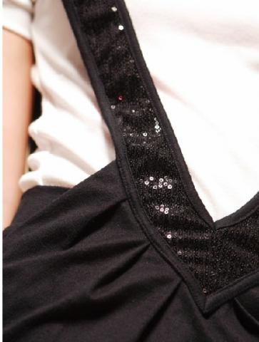 Išmatavimai: ilgis su šleikutėmis 71cm, klubai 80-90cm, liemuo 68-76cm, biustas 82-90cm. Medžiaga: medvilnė + pailette.