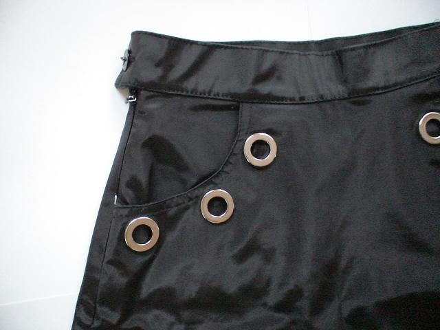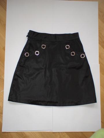sijonas trumpas,blizgi juoda medziaga.metaliniai papuosimai.