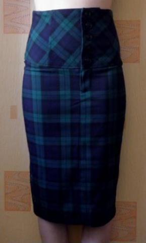 Sijonas aukštu liemeniu, susegamas sagomis.