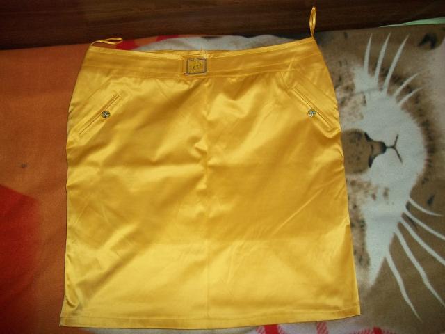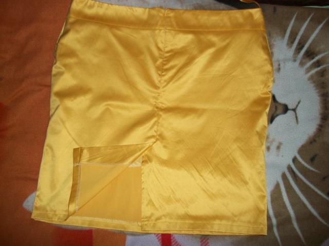 Naujas, viena karta dėvėtas, geltonas sijonas. Skeltukas yra nugaroje