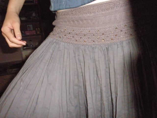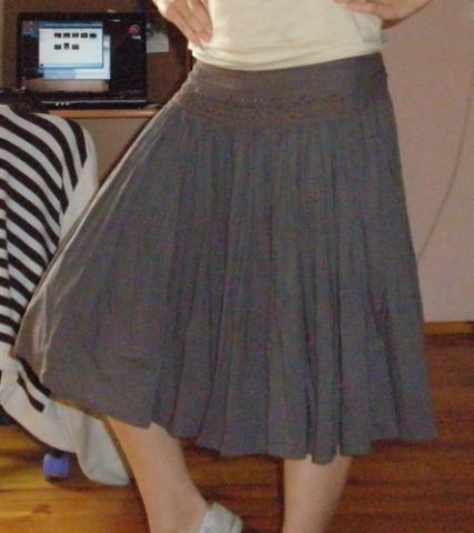 Pilkas, gale yra juostos surišti kaspinui arba mazgui. Pilvo apimtis- 60 cm.
