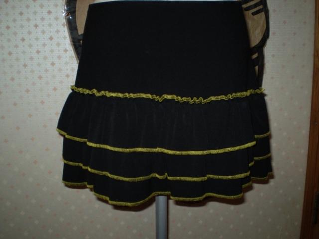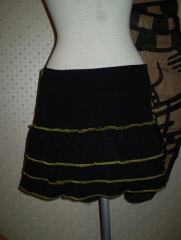 Juodas sijonukas su geltonai apmetytais volaniukais